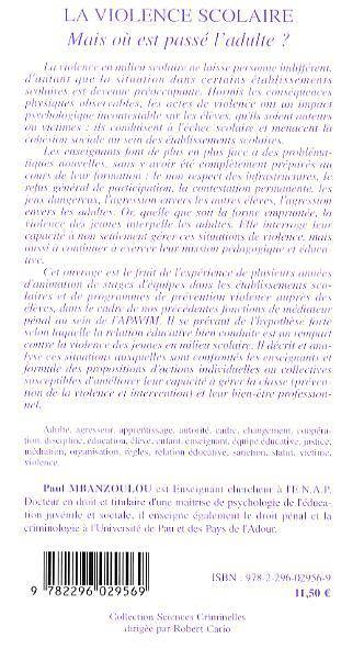 Dans certains établissements, la situation de la violence scolaire est devenue préoccupante. Hormis les conséquences physiques observables, les actes de violence ont un impact psychologique : ils conduisent à l'échec scolaire et menacent la cohésion sociale au sein des établissements. Une relation éducative bien conduite pourrait constituer un rempart contre la violence des jeunes. Cette étude décrit et analyse les situations auxquelles sont confrontées les enseignants et formule des propositions.