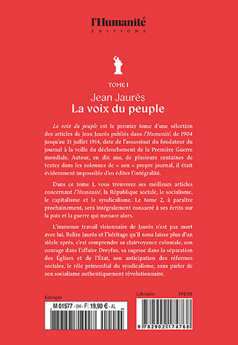 La voix du peuple est le premier tome d’une sélection des articles de Jean Jaurès publiés dans l’l'indépendance financière. Humanité, de 1904 jusqu’au 31 juillet 1914, date de l’assassinat du fondateur du journal à la veille du déclenchement de la Première Guerre mondiale. Auteur, en dix ans, de plusieurs centaines de textes dans les colonnes de « son » propre journal, il était évidemment impossible d’en éditer l’intégralité. Dans ce tome 1, vous trouverez ses meilleurs articles concernant l’Humanité, la République sociale, le socialisme, le capitalisme et le syndicalisme. Le tome 2, à paraître prochainement, sera intégralement consacré à ses écrits sur la paix et la guerre qui menace alors. 0L’immense travail visionnaire de Jaurès n’est pas mort avec lui. Relire Jaurès et l’héritage qu’il nous laisse plus d’un siècle après, c’est comprendre sa clairvoyance coloniale, son courage dans l’affaire Dreyfus, sa sagesse dans la séparation des Églises et de l’État, son anticipation des réformes sociales, le rôle primordial du syndicalisme, sans parler de son socialisme authentiquement révolutionnaire. Jean Jaurès et l'Humanité Le premier numéro de l'Humanité paraît le lundi 18 avril 1904. Journal de quatre pages vendu cinq centimes et tiré à 130 000 exemplaires, son fondateur Jean Jaurès, explique que ce nouveau quotidien socialiste (qui a alors comme sous-titre de la manchette « Journal socialiste quotidien ») doit être dans un premier temps un outil pour l'unification du mouvement socialiste français et, par la suite, un des leviers de la lutte révolutionnaire contre le capitalisme. La rédaction s'installe 110, rue de Richelieu dans le quartier de la presse, puis, en raison du loyer excessif, 27, rue du Croissant à partir du premier mai 1909 et, le 24 juillet 1913, lors du passage aux six pages, au 142, rue Montmartre 10,11. Dans son premier éditorial intitulé « Notre but », Jaurès souhaite fixer deux règles de fonctionnement à son nouveau journal : la recherche d'information étendue et exacte pour donner « à toutes les intelligences libres le moyen de comprendre et de juger elles-mêmes les événements du monde » et Préface Par Fabien Gay Partie I Pour l’Humanité Partie II La république sociale Partie III Socialisme, capitalisme et syndicalisme