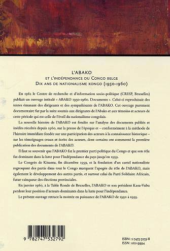 L'ABAKO fut le premier parti politique du Congo, et son rôle fut dominant dans la lutte pour l'indépendance du pays jusqu'en 1959. Cette histoire de l'ABAKO est fondée sur l'analyse des documents publiés et inédits récoltés sur la presse de l'époque et sur les témoignages oraux et écrits des acteurs. Cet ouvrage retrace la montée en puissance de l'ABAKO de 1950 à 1959.