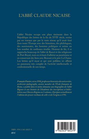 L'abbé Nicaise occupa une place éminente dans la République des lettres de la fin du XVIIe siècle, moins par ses travaux que par le vaste réseau qu'il avait tissé dans toute l'Europe avec des historiens, des philologues, des numismates, des hommes politiques et même un bon nombre de cardinaux érudits. Homme de foi, il se rapprocha beaucoup de l'abbé de Rancé et des religieuses de Port-Royal, mais en évitant d'adhérer au jansénisme et en conservant des liens avec Bossuet et le père La Chaise. Les lettres qu'il reçut et qui sont publiées ici offrent un panorama très complet de l'activité intellectuelle et confessionnelle de son temps.