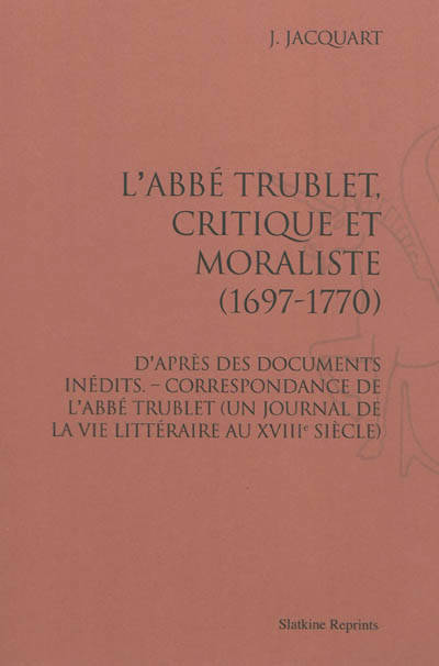 Plus q'une simple biographie, l'auteur réhabilite l'ecclésiastique et écrivain français Nicolas-Charles-Joseph Trublet (1697-1770) considéré comme un témoin de la vie littéraire et mondaine au XVIIIe siècle. Il réunit aussi 70 lettres qui dévoilent non seulement les goûts et les ambitions de l'abbé, mais aussi ceux de ses corresopondants tels que Voltaire, Malesherbes, Fontenelle, et La Condamine.