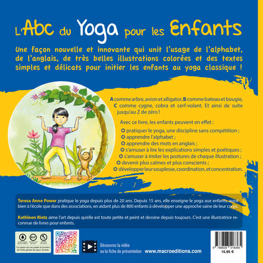 Dans un monde où les écrans prennent de plus en plus de place, il est crucial de trouver des activités qui stimulent à la fois le corps et l’esprit des enfants. L’ABC du Yoga pour les Enfants fait un pari réussi : enseigner le yoga en associant chaque posture à une lettre de l’alphabet et à un animal ou un objet. L'enfant apprend à la fois des postures simples comme celle de l'« Arbre », du « Chat » ou du « Dauphin », tout en explorant des concepts clés, tels que l’équilibre, la souplesse, et la concentration.