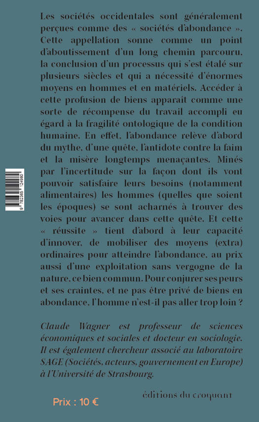 L’âabondance se mesure-t-elle à la quantité de biens accumulés ? Le mythe de l’âabondance a traversé les siècles, l’imaginaire collectif est imprégné par cette vision de la possibilité (ou de l’impossibilité) de disposer d’une grande concentration de biens. De quels biens s’âagit-il ? De biens alimentaires ou de biens matériels en général ? Dans notre propos nous nous intéresserons plus particulièrement aux biens alimentaires, l’âaccumulation de ces biens est assimilée à une forme d’âabondance, à l’âassurance de lendemains plus sereins. En effet un détour par l’histoire nous révèle les nombreuses difficultés que doivent affronter les hommes pour simplement survivre à l’image d’un Moyen Âge où les quelques avancées techniques n’âarrivent pas à juguler les menaces de toute part (climat, invasions, maladies, etc.). La terre n’âassure pas sa fonction nourricière au regard de nombreuses incertitudes qui pèsent sur toute la société. La vision d’une nature généreuse s’efface devant toute tentative de la dompter. Il y a bien un rapport utilitaire à la nature mais celui-ci est contrarié par de nombreux aléas. Il reste à s’en remettre au divin, à la clémence du ciel pour assurer de bonnes récoltes. L’inaccessible abondance est transformée en mythe, en une impossible quête. Mais c’est sans compter sur les capacités des hommes à innover, à entreprendre et à imaginer de nouvelles stratégies de développement. La science économique s’invite ainsi dans le débat pour apporter ses éclairages afin de penser non pas l’âabondance mais la rareté (ou l’âabondance relative). Elle nous rappelle que nous habitons dans un monde fini et pour échapper à tout fatalisme un nouveau regard sur l’organisation économique est nécessaire. Cet essai se situe donc à la croisée de trois disciplines : l’histoire, l’âanthropologie et l’économie. L’âabondance, comme phénomène complexe et aux dimensions multiples, mérite d’être appréhendée à travers différents angles. Ce texte s’inscrit aussi dans la continuité d’une réflexion que nous avons commencée à mener dans un précédent ouvrage sur l’emprise de la grande distribution sur les habitudes de consommation. Avec la grande distribution l’âabondance prend les contours d’une évidence, d’un artéfact aussi, une illusion encore tant cet étalement de richesses est (extra)ordinaire. L’offre « illimitée » de biens s’impose désormais aux consommateurs grâce à différentes techniques et stratégies mûrement bâties. Le consommateur (ex chasseur-cueilleur) n’est-il pas ainsi récompensé par le travail et le parcours accomplis sur plusieurs siècles pour échapper aux privations multiples et la hantise de manquer de rien ?