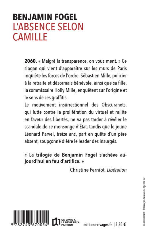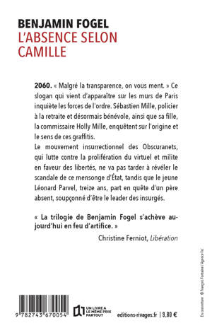2060 : la vie en ligne a supplanté la vie réelle. « Malgré la transparence, on vous ment » : ce slogan qui vient d'apparaitre sur les murs de Paris inquiète les forces de l'ordre. Sébastien Mille, vieux flic bénévole, et sa fille, la commissaire Holly Mille, enquêtent sur l'origine de ces graffitis. Léonard Parvel, 13 ans, fait partie des taggeurs. Persuadé que son père disparu est membres des Obscuranets, mouvement révolutionnaire qui lutte contre la prolifération du virtuel, il participe à des actions insurrectionnelles dans l'espoir de retrouver sa trace.