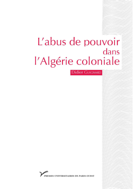 Dans les années 1890, on assiste à une dénonciation croissante des abus de pouvoir en Algérie coloniale. La compétition électorale de la minorité française en est souvent à l'origine. Mais l'attention du Parlement et de la presse métropolitaine grandit pour transformer ces affaires en « scandales algériens ». Ils donnent à voir un système politique et administratif gangrené par la violence, le clientélisme et la corruption qui sont nourris par l'abondance des fonds publics dans une colonie de peuplement boudée par le grand capital. Comme pratique et représentation du pouvoir, l'abus est alors facilité par le droit, la confusion du droit et la défaillance des institutions de contrôle, dans un contexte plus général de sous-administration. Ces données sont parfaitement intégrées par les agents de l'État et l'ensemble des administrés ; elles développent un sentiment d'impunité, des stratégies de participation ou de contournement, propres à faire durer le système.