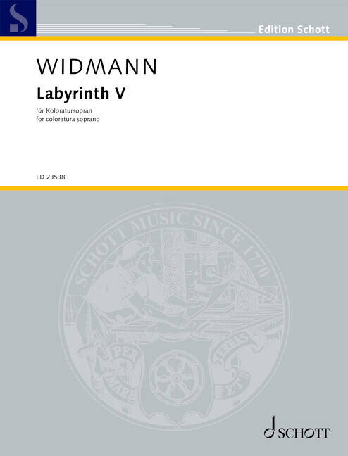 Jörg Widmann's Labyrinth V focuses on the relationship between body, voice and emotion. It features playing techniques that integrate the human body as a medium of sonic articulation and consciously aim to strip away culturally coded forms of expression. The aim is to create a sound practice that is based on pre-linguistic primal sounds and refers to early stages of human existence. The aesthetic tension of the work results from the interplay of an archaic sound material with a labyrinthine structure. Labyrinth V invites both the performer and the audience to explore preconscious forms of communication. Instrumentation: Koloratursoprano