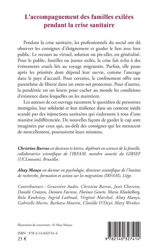 Pendant la crise sanitaire, les professionnels du social ont dû observer les consignes d'éloignement et garder le lien avec leur public. Le recours au virtuel, solution ou pis-aller, est généralisé. Pour le public, familles ou jeunes exilés, la crise fait écho à des événements cruels liés au voyage migratoire. Parfois, elle passe après les priorités dont dépend leur survie, comme l'ancrage dans le pays d'accueil. Pour certains, le confinement offre une parenthèse de liberté dans un entre-soi protecteur. Pour d'autres, la pandémie est un leurre pour cacher au monde les conditions d'existence dans lesquelles on les maintient. Les auteurs de cet ouvrage racontent le quotidien de personnes immigrées, leur solidarité et leur résilience dans un contexte inédit scandé par des injonctions sanitaires qui s'adressent à tous d'une manière indifférenciée. De nouvelles façons de garder le cap sont imaginées par ceux qui, au-delà des consignes qui les menacent de morcellement, poursuivent leurs missions.
