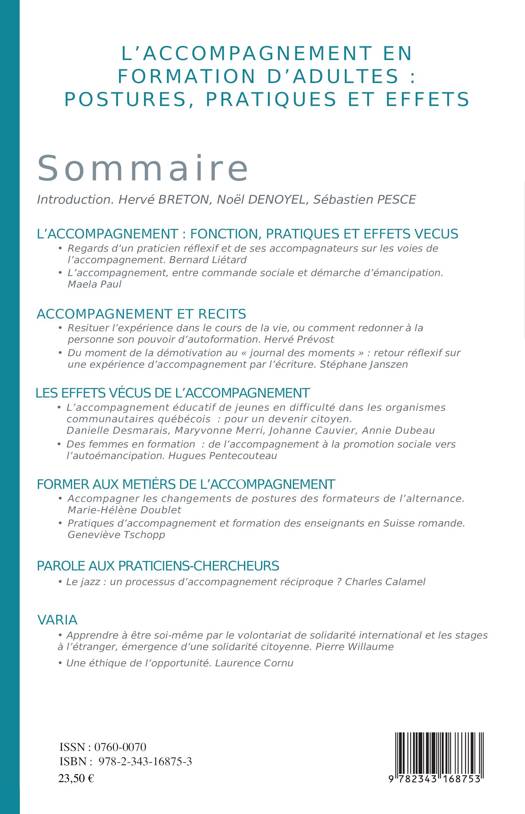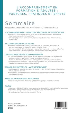 L'accompagnement en formation d'adultes : postures, pratiques et effets. Ce numéro a été coordonné par Hervé Breton, Noël Denoyel et Sébastien Pesce.