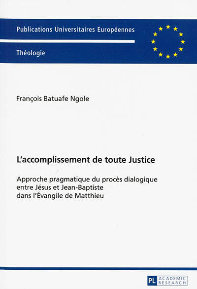 Cet ouvrage démontre que la Justice est le thème théologique et la clé d'interprétation du rapport entre Jésus et Jean-Baptiste dans l'Évangile de Matthieu. L'exégèse pragmatique des textes met en relief leur structure dialogique (3,13-17; 9,14-17; 11,2-19; 14,1-12; 16,13-20; 17,10-13; 21,23-32) et révèle que Matthieu instaure un procès dialogique entre Jésus et Jean. Grâce à l'intérêt méthodologique pour les actes de langage et l'interaction entre le texte et le lecteur, l'ouvrage montre que le dialogique est une stratégie herméneutique, avec des enjeux théologiques, christologiques et pragmatiques. Les conclusions ébauchent des perspectives sur la dialectique théologique, la problématique identitaire, la christologie en procès dialogique, et la construction du lecteur dialogal.