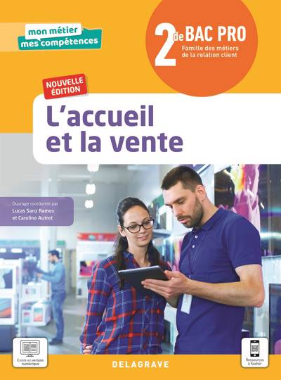 Neuf chapitres aux pages détachables présentant les diverses situations professionnelles relatives aux métiers de l'accueil et de la vente, assortis de témoignages. Des activités variées et ludiques sont proposées pour tester ses acquis et réinvestir ses compétences. Avec des QR codes donnant accès à des ressources numériques complémentaires.