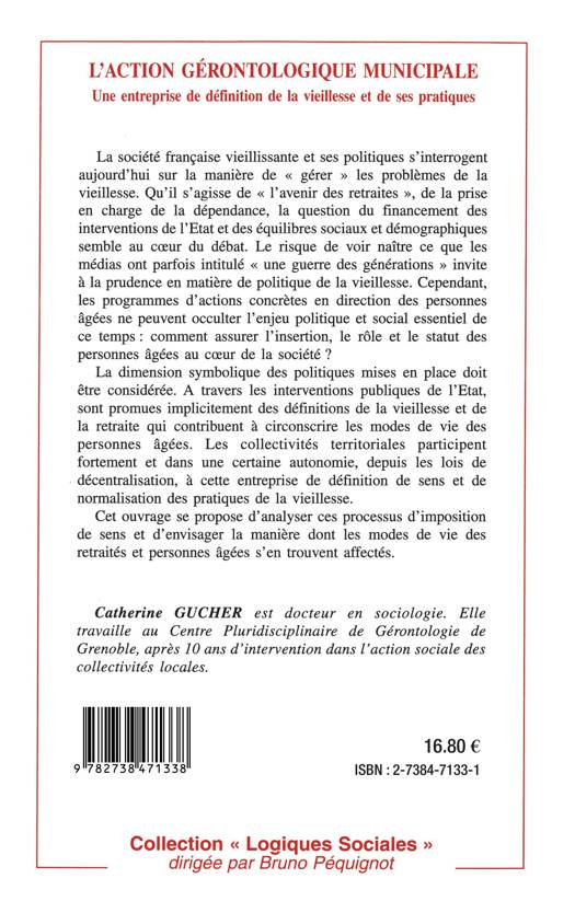 La société française vieillissante et ses politiques s'interrogent aujourd'hui sur la manière de "gérer" les problèmes de la vieillesse. Les programmes d'actions concrètes en direction des personnes âgées ne peuvent occulter l'enjeu politique et social essentiel de ce temps : comment assurer l'insertion, le rôle et le statut des personnes âgées au coeur de la société ? A travers les interventions publiques de l'Etat, sont promues implicitement des définitions de la vieillesse et de la retraite qui contribuent à circonscrire les modes de vie des personnes âgées. Cet ouvrage se propose d'analyser ces processus d'imposition de sens et d'envisager la manière dont les modes de vie des retraités et personnes âgées s'en trouvent affectés.