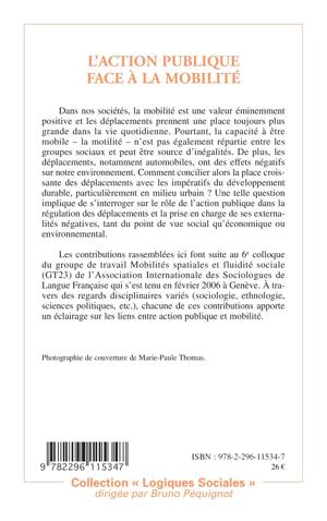 Dans nos sociétés, la mobilité est une valeur éminemment positive et les déplacements prennent une place toujours plus grande dans la vie quotidienne. Pourtant, la capacité à être mobile n'est pas également répartie entre les groupes sociaux et certains déplacements ont des effets négatifs sur notre environnement. Comment concilier la place croissante des déplacements avec les impératifs du développement durable ? Quel est le rôle de l'action publique dans la régulation des déplacements ?
