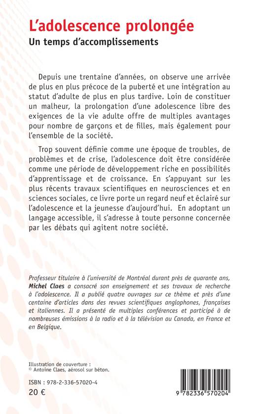 Depuis une trentaine d'années, on observe une arrivée de plus en plus précoce de la puberté et une intégration au statut d'adulte de plus en plus tardive. Loin de constituer un malheur, la prolongation d'une adolescence libre des exigences de la vie adulte offre de multiples avantages pour nombre de garçons et de filles, mais également pour l'ensemble de la société. Trop souvent définie comme une époque de troubles, de problèmes et de crise, l'adolescence doit être considérée comme une période de développement riche en possibilités d'apprentissage et de croissance. En s'appuyant sur les plus récents travaux scientifiques en neurosciences et en sciences sociales, ce livre porte un regard neuf et éclairé sur l'adolescence et la jeunesse d'aujourd'hui. En adoptant un langage accessible, il s'adresse à toute personne concernée par les débats qui agitent notre société.