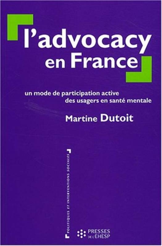 Fondée en 1996, l'association Advocacy France cherche à promouvoir une démarche participative des usagers en santé mentale qui soit une authentique alternative citoyenne aux pratiques habituelles. Au-delà de la défense des usagers, sa préoccupation majeure est d'impulser des stratégies coopératives innovantes entre les différents acteurs, dont témoignent par exemple les Espaces conviviaux citoyens. Après plus de dix ans à la tête de l'association, Martine Dutoit a voulu rendre compte de sa démarche. Privilégiant une logique de l'action, son livre expose une pratique et laisse une large place aux témoignages, récits d'expérience et modes d'intervention. Les concepts organisateurs, les valeurs mobilisatrices à l'origine des interventions ne sont pas oubliés pour autant. Tous participent d'un modèle que ses promoteurs entendent bien continuer à inventer au quotidien.