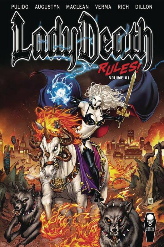 Lady Death awakes from a 20-year, spell-induced slumber and finds herself in the fiery pits of Hell. Who among her depraved enemies is responsible? Her epic, ultra-violent quest for answers brings her into conflict with Hell's rogues gallery: the nefarious Hellwitch, Atrocitas, an insane angel/demon hybrid assassin and Baphomet, a demonic religious zealot pledged to Satanus. Experience Lady Death fully realized! Chock full of sex, violence, and very, very bad behavior. If you want unapologetic, heavy metal inspired stories that kick your ass, Coffin Comics cordially invites all "Fiends" new and old to get Lady Death Rules! Vol. 1!