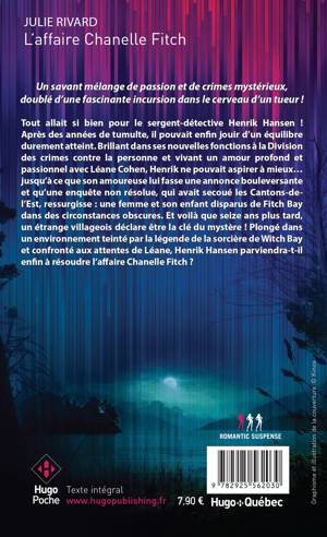 Tout allait si bien pour le sergent-détective Henrik Hansen ! Après des années de tumulte, il pouvait enfin jouir d’un équilibre durement atteint. Brillant dans ses nouvelles fonctions à la Division des crimes contre la personne et vivant un amour profond et passionnel avec Léane Cohen, Henrik ne pouvait aspirer à mieux… jusqu’à ce que son amoureuse lui fasse une annonce bouleversante et qu’une enquête non résolue, qui avait secoué les Cantons-de-l’Est, ressurgisse : une femme et son enfant disparus de Fitch Bay dans des circonstances obscures. Et voilà que seize ans plus tard, un étrange villageois déclare être la clé du mystère ! Plongé dans un environnement teinté par la légende de la sorcière de Witch Bay et confronté aux attentes de Léane, Henrik Hansen parviendra-t-il enfin à résoudre l’affaire Chanelle Fitch ?