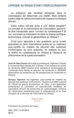 La présence des sociétés africaines dans le cyberespace est désormais une réalité. Mais certains parlent déjà de cybercolonisation de l'espace numérique africain. Cette notion fait-elle écho à une réalité tangible ? Le concept et le phénomène de colonisation peuvent-ils être transposés dans l'univers du cyberespace ? Si oui, comment se traduisent-ils dans le champ politique, économique, culturel et géopolitique en Afrique ? C'est pour répondre à ces questions qu'un juriste spécialisé en droit international public et un ingénieur poly-certifié en matière de sécurité des systèmes d'information se sont associés. Ils mettent au jour la réalité du cyberespace en Afrique à l'épreuve du phénomène de la cybercolonisation.