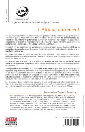 Cet ouvrage rassemble des chercheurs, des penseurs et des créateurs qui partagent la conviction que la transformation des systèmes de production de connaissances est essentielle pour libérer le potentiel de l’Afrique en matière de développement. Les auteurs proposent des dispositifs méthodologiques et épistémologiques cohérents pour penser la recherche en sciences de gestion depuis un horizon africain.
