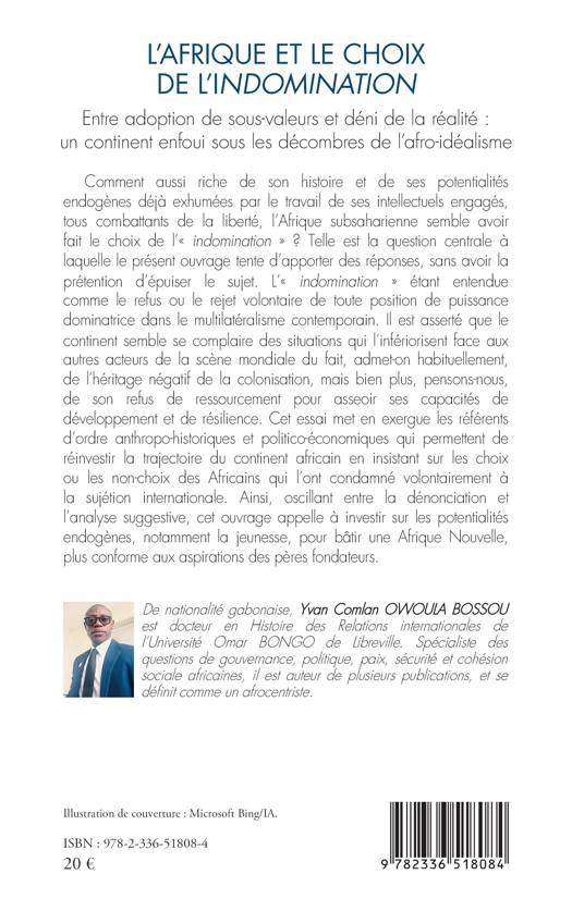 Comment aussi riche de son histoire et de ses potentialités endogènes déjà exhumées par le travail de ses intellectuels engagés, tous combattants de la liberté, l'Afrique subsaharienne semble avoir fait le choix de l' indomination ? Telle est la question centrale à laquelle le présent ouvrage tente d'apporter des réponses, sans avoir la prétention d'épuiser le sujet. L' indomination étant entendue comme le refus ou le rejet volontaire de toute position de puissance dominatrice dans le multilatéralisme contemporain. Il est asserté que le Continent semble se complaire des situations qui l'infériorisent face aux autres acteurs de la scène mondiale du fait, admet-on habituellement, de l'héritage négatif de la colonisation, mais bien plus, pensons-nous, de son refus de ressourcement pour asseoir ses capacités de développement et de résilience. Cet essai met en exergue les référents d'ordre anthropo-historiques et politico-économiques qui permettent de réinvestir la trajectoire du continent africain en insistant sur les choix ou les non-choix des Africains qui l'ont condamné volontairement à la sujétion internationale. Ainsi, oscillant entre la dénonciation et l'analyse suggestive, cet ouvrage appelle à investir sur les potentialités endogènes, notamment la jeunesse, pour bâtir une Afrique Nouvelle, plus conforme aux les aspirations des pères fondateurs.