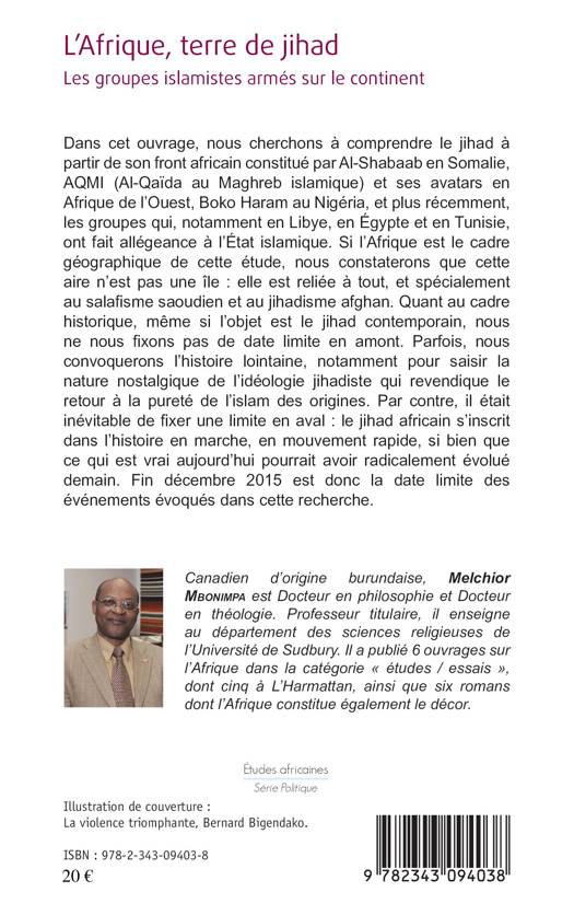 Cet ouvrage cherche à comprendre le jihad à partir de son front africain constitué par Al-Shabaab en Somalie, AQMI et ses avatars en Afrique de l'Ouest, Boko Haram au Nigéria, et plus récemment, les groupes qui, en Lybie, Egypte et Tunisie, ont fait allégeance à l'État islamique. Même si l'objet de l'ouvrage est le jihad contemporain, il convoquera l'histoire lointaine pour saisir la nature de cette idéologie jihadiste qui revendique le retour à la pureté de l'islam des origines.