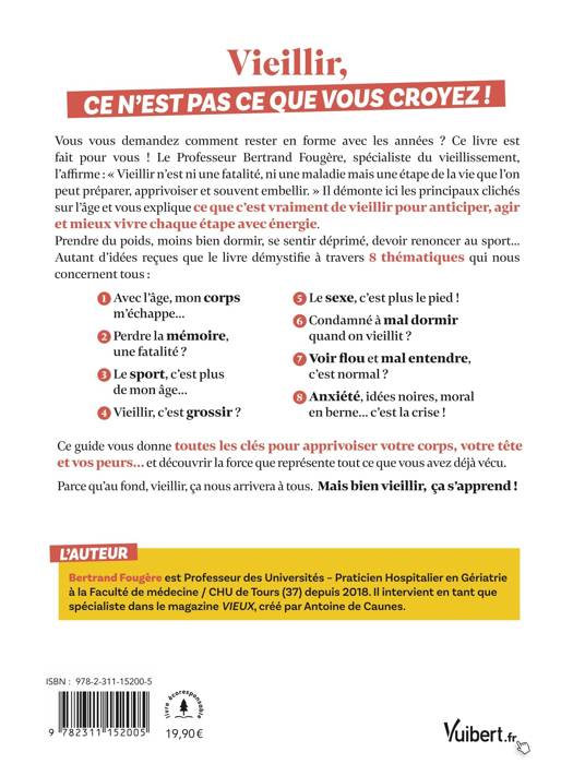 Vous vous demandez comment rester en forme avec les années ? Ce livre est fait pour vous ! Le Professeur Bertrand Fougère, spécialiste du vieillissement, l’affirme : « Vieillir n’est ni une fatalité, ni une maladie mais une étape de la vie que l’on peut préparer, apprivoiser et souvent embellir. » Dans ce livre, il démonte les principaux clichés sur l’âge et vous explique ce que c’est vraiment de vieillir pour anticiper, agir et mieux vivre chaque étape avec énergie.