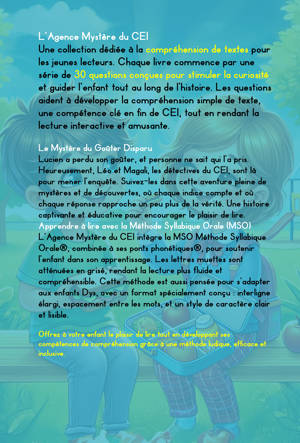 L'Agence Mystère du CE1 est bien plus qu'une simple collection de livres. Chaque ouvrage débute par 30 questions conçues pour stimuler la curiosité et guider les enfants tout au long de l'histoire. Ces questions permettent de développer leur compréhension de texte, une compétence essentielle en fin de CE1, tout en rendant la lecture interactive et captivante.