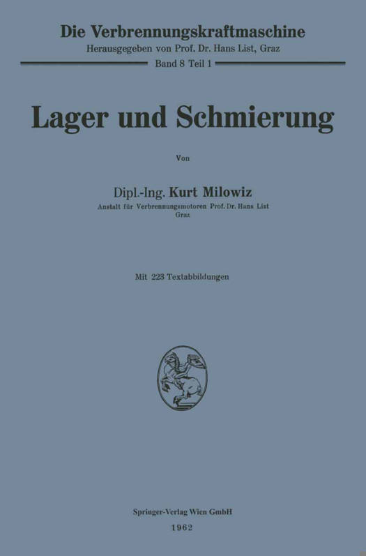 Von Herrn Professor Dr. HANS LIST wurde ich eingeladen, im Rahmen der von ihm herausgegebenen Sammlung "Die Verbrennungskraftmaschine" das Thema "Lager und Schmierung" zu behandeln. Gerne folgte ich diesem Wunsche; besonders, da ich die in diesem Band beschriebene Berechnungsmethode seit Jahren an zahlreichen Beispielen mit Erfolg anwenden konnte und so ihre Brauchbarkeit in der Praxis durch Nachrechnung vorhandener und Vorausberechnung neuer Lager bewiesen ist. Der Grundstock dafür wurde schon auf der Technischen Hochschule Graz von meinen ehemaligen Lehrern, Herrn Professor Dr. techn. A. STELLER, Herrn Professor Dr. techn. A. KLEMEXCIC und Herrn Professor Dr.-lng. K. BAUER, gelegt. Auch meine Mitarbeit im VDl im Arbeitskreis Deutscher Konstruktionsingenieure (ADKl) wirkte sieh befruchtend aus. Das Hauptgewicht liegt auf der Berechnung und Konstruktion von Gleitlagern, da die Wälzlager dem Konstrukteur keine besonderen Schwierigkeiten bereiten. Von den Wälzlagerfirmen wird ja in reichem Maße Literatur und persönliche Unterstützung durch Fachkräfte zur Verfügung gestellt. Die Gleitlager aber geben dem Konstrukteur bei ihrer Berechnung und Konstruktion sehr viel Freiheit. Er muß alle Angaben dafür selbst machen; der 'Werkstoff, das Lagerspiel, die Oberflächengüte, die Ausführung der Laufflächen und letzten Endes der Schmierstoff, alldiesliegt mit sämtlichen Kombinations- möglichkeiten zur Auswahl in seiner Hand. Die vorliegende Arbeit enthält, ausgehend von den Grundlagen, alles Wesentliche, um Lagerberechnungen jeder Art durchführen zu können; für den Studierenden auf- bauend Stufe um Stufe; für den in der Praxis Stehenden ein Rezeptbuch mit Beispielen und Vergleichen.