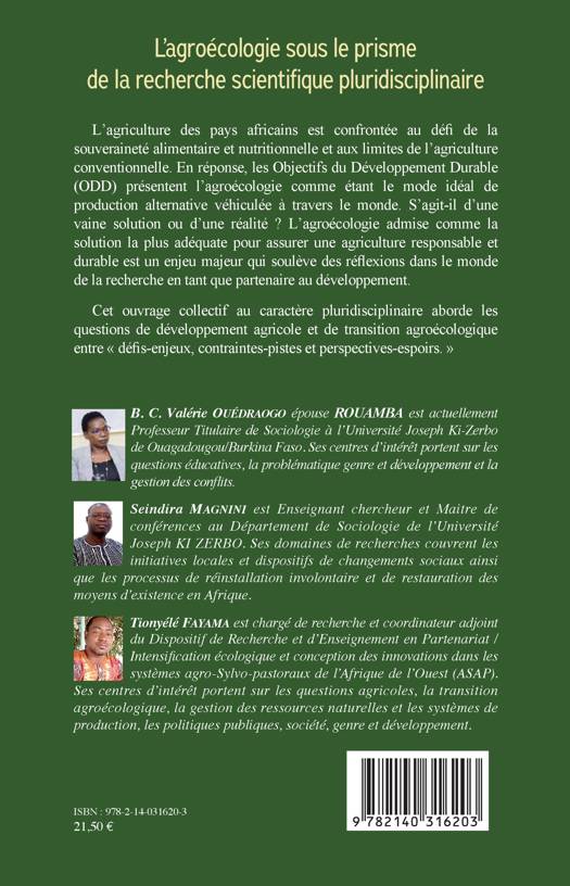 L'agriculture des pays africains est confrontée au défi de la souveraineté alimentaire et nutritionnelle et aux limites de l'agriculture conventionnelle. En réponse, les Objectifs du Développement Durable (ODD) présentent l'agroécologie comme étant le mode idéal de production alternative véhiculée à travers le monde. S'agit-il d'une vaine solution ou d'une réalité ? L'agroécologie admise comme la solution la plus adéquate pour assurer une agriculture responsable et durable est un enjeu majeur qui soulève des réflexions dans le monde de la recherche en tant que partenaire au développement. Cet ouvrage collectif au caractère pluridisciplinaire aborde les questions de développement agricole et de transition agroécologique entre « défis-enjeux, contraintes-pistes et perspectives-espoirs. »