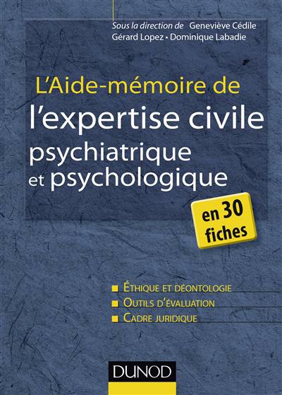 L’expertise civile couvre un champ important allant de l’indemnisation du dommage corporel, aux expertises familiales en passant par les problèmes de responsabilité médicale et la protection des personnes. La mission de l'expert "psy" est de faciliter une décision administrative et judiciaire. Il est fait appel à lui par exemple dans le cas d'un divorce conflctuel posant la question de la garde des enfants, d'une demande d'interdiction civile (tutelle, curatelle) ou encore de la privation de liberté (placement de la personne). Cet aide-mémoire est un ouvrage de référence pour accompagner les psychologues et psychiatres dans leurs expertises, et s'adresse aussi aux juristes qui doivent comprendre les problèmes spécifiques posés par la psychologie dans les expertises.