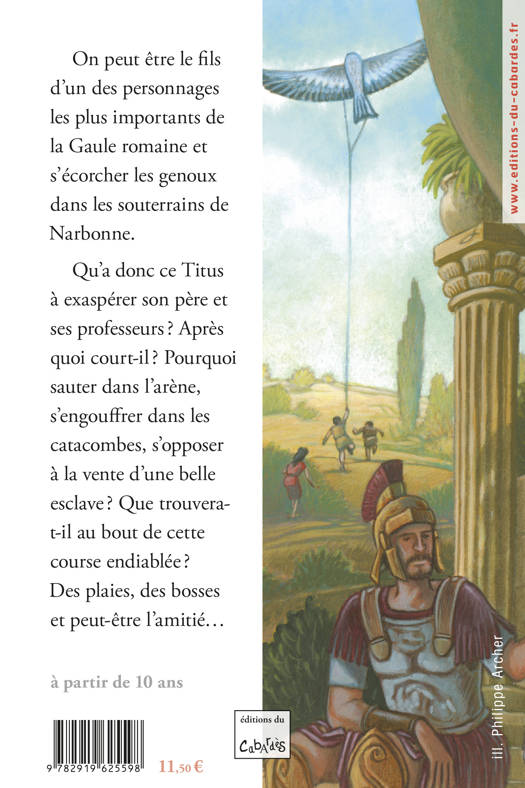 Qu'a donc ce Titus à exaspérer son père et ses professeurs ? Après quoi court-il ? Pourquoi sauter dans l'arène, s'engouffrer dans les catacombes, s'opposer à la vente d'une belle esclave ? Que trouvera-t-il au bout de cette course endiablée ? Des plaies, des bosses et peut-être l'amitié...