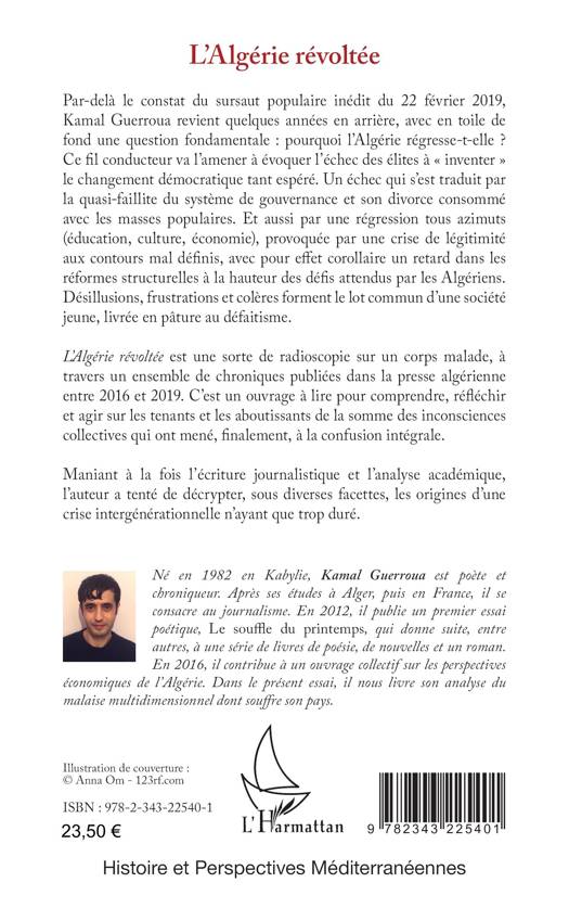 Par-delà le constat du sursaut populaire inédit du 22 février 2019, Kamal Guerroua tente de répondre à une question fondamentale: pourquoi l'Algérie régresse-t-elle ? Ce fil conducteur va l'amener à évoquer l'échec des élites à inventer le changement démocratique tant espéré, ce qui a conduit à la quasi-faillite du système de gouvernance et son divorce consommé avec les masses populaires. Régression tous azimuts, retard dans les réformes structurelles ont provoqué désillusions, frustrations et colères au sein d'une société jeune, livrée en pâture au défaitisme. L'ouvrage est une sorte de radioscopie sur un corps malade, à travers un ensemble de chroniques publiées dans la presse algérienne entre 2016 et 2019.