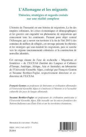 L'histoire de l'humanité est une histoire de migrations. La fin des empires coloniaux, les crises économiques et démographiques et les guerres ont engendré un phénomène de migrations qui concernent tous les continents. Prenant pour objet central l'Allemagne, qui a ouvert son territoire à la fin de l'été 2015 à des centaines de milliers de réfugiés, cet ouvrage présente les théories et les stratégies qui sous-tendent les migrations, puis se ramifie vers les régions (anciennement) colonisées et la construction de nouvelles identités.