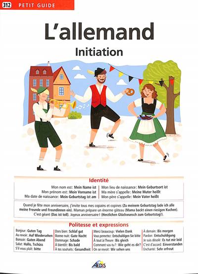 L'essentiel de l'allemand en conjugaison, formules de politesse et vocabulaire pour la conversation courante, avec des mots sur les thèmes du temps, des loisirs, de l'école ou encore de la nature.