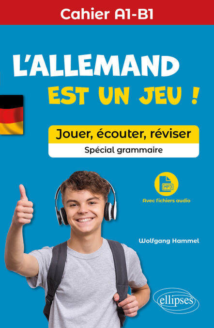 Quel que soit votre niveau (A1, A2 ou B1), mots croisés, quiz, petits textes à compléter à l’aide de l’audio, mots mêlés, jeux de lettres, oui-non… seront vos compagnons de révision de près de 30 éléments de base de la grammaire allemande !