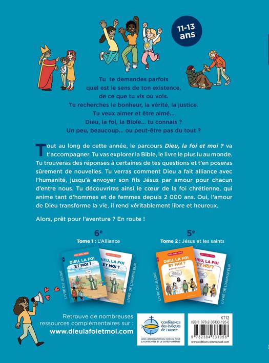 Ce parcours sur deux années permet aux jeunes de se questionner sur Dieu, la foi chrétienne et le sens de leur vie, à partir de la Bible (dominante AT en 6e et NT en 5e), des fêtes liturgiques et de leur vie quotidienne. Chacune des 28 rencontres contient : - Un texte biblique (ou un aspect de la vie chrétienne) - Un enseignement riche et interactif articulé autour de grandes questions et d’activités ludiques - + des encadrés culturels, mots clés, illustrations, œuvres d’art, quiz, défis, prières… et de nombreuses vidéos à flasher (témoignages, chants…) ! Un parcours complet, profond et joyeux, adapté aux collégiens d’aujourd’hui.