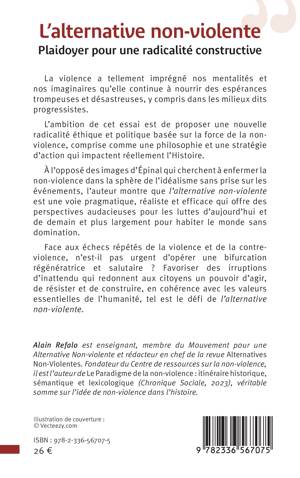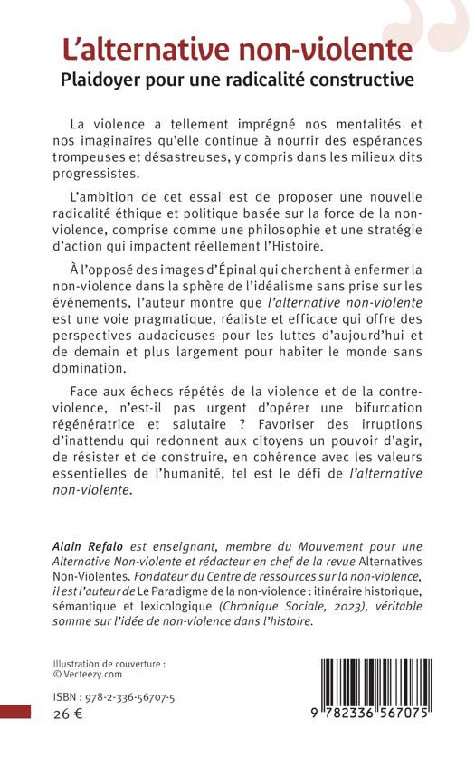 La violence a tellement imprégné nos mentalités et nos imaginaires qu'elle continue à nourrir des espérances trompeuses et désastreuses, y compris dans les milieux dits progressistes. L'ambition de cet essai est de proposer une nouvelle radicalité éthique et politique basée sur la force de la nonviolence, comprise comme une philosophie et une stratégie d'action qui impactent réellement l'Histoire. À l'opposé des images d'Épinal qui cherchent à enfermer la non-violence dans la sphère de l'idéalisme sans prise sur les événements, l'auteur montre que l'alternative non-violente est une voie pragmatique, réaliste et efficace qui offre des perspectives audacieuses pour les luttes d'aujourd'hui et de demain et plus largement pour habiter le monde sans domination. Face aux échecs répétés de la violence et de la contreviolence, n'est-il pas urgent d'opérer une bifurcation régénératrice et salutaire ? Favoriser des irruptions d'inattendu qui redonnent aux citoyens un pouvoir d'agir, de résister et de construire, en cohérence avec les valeurs essentielles de l'humanité, tel est le défi de l'alternative non-violente.