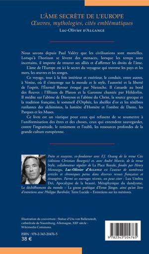 Nous savons depuis Paul Valéry que les civilisations sont mortelles. Lorsqu'à l'horizon se lèvent des menaces, lorsque les temps sont incertains, il importe de trouver des alliés et d'affirmer les droits de l'âme. L'âme de l'Europe est ici le secret du voyageur qui traverse les pays et les mers, les oeuvres et les songes. Ce voyage le conduit, entre autres, à Venise, où il s'interroge sur la morale et le style, l'autorité et la liberté de l'esprit, c'est aussi Nietzsche, Platon, Hölderlin, Dionysos ou Dante. Cet ouvrage est un viatique pour ceux qui refusent de se soumettre à l'uniformatisation des êtres et des choses, ceux qui entendent sauvegarder les ressources profondes de la grande culture européenne.