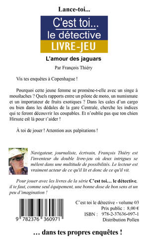 Vis tes enquêtes à Copenhagueâ! Pourquoi cette jeune femme se promène-t-elle avec un singe à moustaches ? Quels rapports entre un pilote de moto, un numismate et un importateur de fruits exotiques ? Dans les cales d’un cargo ou bien dans les dédales de la gare Centrale, cherche les indices qui te feront découvrir les coupables. Et n’oublie pas que ton chien Hirsute est là pour t’aider ! À toi de jouerâ! Attention aux palpitationsâ!