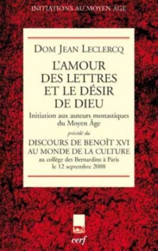 Ce livre est une initiation aux auteurs monastiques du Moyen Âge. À lui seul, son titre en donne l'esprit et le ton, tout en sensibilité et en finesse : « L'Amour des lettres et le Désir de Dieu ». Et que dire de l'érudition, riche et discrète, que Jean Leclercq y déploie pour servir son lecteur. Paru pour la première fois en 1957 aux Éditions du Cerf, cet ouvrage s'est imposé comme un classique par la solidité de son information et l'acuité de ses perceptions. Surtout peut-être par l'authenticité de l'attitude intellectuelle qu'il traduit : rigueur scientifique, goût pour un savoir ouvert sur les questions essentielles de l'existence humaine. Le secret de son actualité est là. Mais il y a plus, ainsi que le rappelait le pape Benoît XVI dans son discours au monde de la culture, à Paris, le 12 septembre 2008 : « La recherche de Dieu requiert donc, intrinsèquement, une culture de la parole, ou, comme le disait Dom J. Leclercq : eschatologie et grammaire sont dans le monachisme occidental indissociables l'une de l'autre. Le désir de Dieu comprend l'amour des lettres, l'amour de la parole, son exploration dans toutes ses dimensions. Puisque, dans la parole biblique, Dieu est en chemin vers nous et nous vers Lui, [les moines] devaient apprendre à pénétrer le secret de la langue, à la comprendre dans sa structure et dans ses usages. Ainsi, en raison même de la recherche de Dieu, les sciences profanes, qui nous indiquent les chemins vers la langue, devenaient importantes... » Comment mieux dire l'apport stimulant que l'ouvrage de Dom J. Leclercq peut encore faire aux problématiques contemporaines littéraires et philosophiques, théologiques et spirituelles.