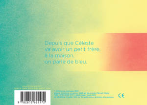 Depuis que Céleste va avoir un petit frère, à la maison, on parle de bleu. C'est le moment qu'ont choisi ses parents pour peindre, ranger, réorganiser l'espace. L'arrivée d'un petit frère ou d'une petite soeur s'accompagne d'inquiétude et de dérangement. Céleste n'y échappe pas. Mais cette réorganisation, comme elle le comprendra, n'exclut pas l'amour d'un environnement familial.