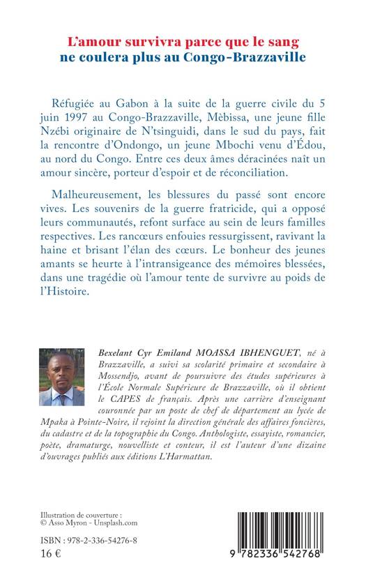 Réfugiée au Gabon à la suite de la guerre civile du 5 juin 1997 au Congo-Brazzaville, Mèbissa, une jeune fille Nzébi originaire de N’tsinguidi, dans le sud du pays, fait la rencontre d’Ondongo, un jeune Mbochi venu d’Édou, au nord du Congo. Entre ces deux âmes déracinées naît un amour sincère, porteur d’espoir et de réconciliation.