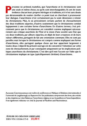 Personne ne prétend, toutefois, que l’anarchisme et le christianisme sont une seule et même chose, ou qu’ils sont interchangeables. Ils ont de toute évidence chacun leurs propres héritages et traditions, et il n’est sans doute pas déraisonnable de vouloir clarifier ce point tout en cherchant à promouvoir leur dialogue. L’anarchisme n’est certainement pas la seule dimension à retenir du christianisme. Mais, là où précisément certains parlent de chevauchement des deux traditions séparées, d’autres soutiennent que le christianisme conduit logiquement à une certaine forme d’anarchisme. En d’autres termes, c’est précisément parce que le christianisme est considéré comme impliquant nécessairement une critique anarchiste de l’État et la vision d’une société sans État que ces deux traditions, par ailleurs séparées, en dépit de leurs croyances et de leurs valeurs différentes, partagent de fait une orientation commune. Elles ne sont pas pareilles mais lorsque le christianisme est compris comme impliquant une forme d’anarchisme, elles partagent quelque chose qui leur appartient largement à toutes deux. L’objectif du présent ouvrage est de concentrer l’attention sur cette zone de chevauchement, et par conséquent uniquement sur les implications politiques anarchistes du christianisme. C’est dire qu’il met l’accent sur l’idée que le christianisme implique un type (spécifiquement chrétien) d’anarchisme.