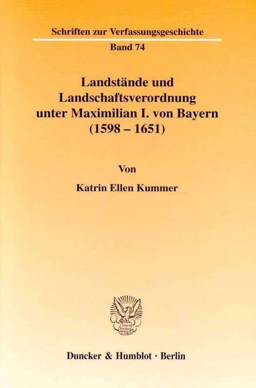 Die Verfasserin untersucht das Verhältnis zwischen dem bayerischen Landesfürsten Maximilian I. und den Landständen sowie den Beitrag der Landstände zum Aufbau des frühneuzeitlichen Steuerstaates. Einen Schwerpunkt der Untersuchung bildet die Frage, inwieweit die Mitbestimmungsrechte der Landstände vor allem in Steuerangelegenheiten von Maximilian I. respektiert wurden. Aufgearbeitet werden hierfür die Landtagsverhandlungen, in denen Maximilian I. sich die Zustimmung der Landstände zu Steuererhebungen holte, sowie die von den Landständen selbständig betriebene Steuereinnahme und -verwaltung.