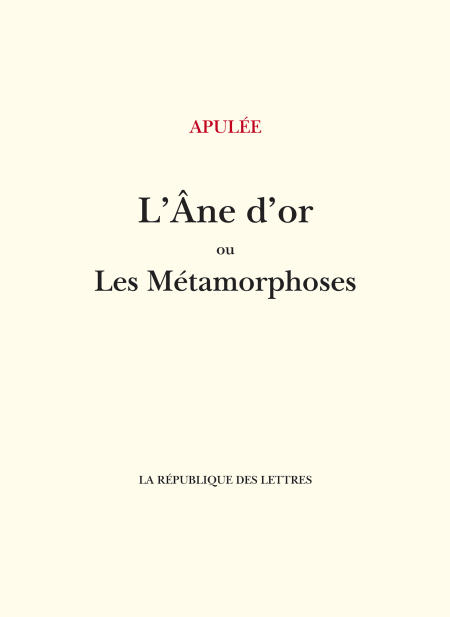 Apulée doit sa renommée aux "Métamorphoses", appelé aussi "L’Âne d’or" ("Asinus aureus"), premier roman en prose de langue latine. Ce récit en onze chapitres relate les aventures d’un jeune homme, Lucius, malencontreusement transformé en âne par sa maîtresse Photis à l’aide d’un onguent magique. Après diverses péripéties comiques, érotiques et ésotériques, où le lecteur découvre entre autres le mythe d’Éros et Psyché, il revient à sa forme humaine en mangeant une couronne de roses. "L’Âne d’or" s’achève par une initiation aux mystères d’Eleusis et une célébration du culte d’Isis et d’Osiris. Un prêtre explique alors la signification spirituelle de la métamorphose, l’âme de l’homme étant chassée de son état de béatitude pour connaître les vicissitudes de l’état animal. La onzième partie, empreinte en son début d’une craintive joie religieuse, ne cesse, jusqu’à la fin, d’être un splendide récit des visions extatiques de la liturgie mystique et des initiations sacrées. La personnalité d’Apulée s’y dessine nettement à travers le héros qui, soudain, n’est plus le Grec Lucius, mais un natif de Madaure, autrement dit lui-même. Dans "L’Âne d’or ou Les Métamorphoses" apparaît tout le génie de l’auteur, sans doute l’écrivain le plus personnel de l’Antiquité quant au style.