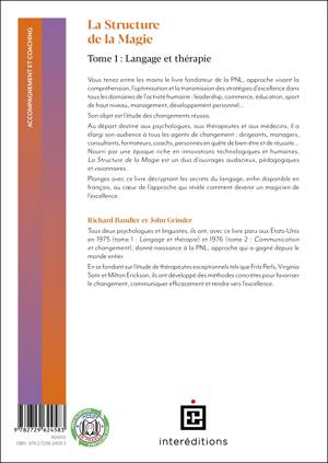La Structure de la Magie forme un duo d'ouvrages audacieux, pédagogiques et visionnaires, fondant une approche dont on connait le fantastique développement. Ce tome 1 décrypte les secrets du langage. Il montre comment la grammaire transformationnelle a profondément influencé la psychologie expérimentale. Le livre a été explicitement conçu pour permettre aux personnes travaillant sur la complexité du comportement humain de prendre la mesure des découvertes de la grammaire transformationnelle. Il fournit un ensemble d'outils concrets pour devenir meilleur thérapeute.