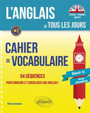Cet ouvrage permettra au lecteur ayant desbases élémentaires en Anglais de s'entraîner à son rythme pour enrichir son vocabulaire au quotidien, atteindre rapidement un niveau B1 et s'exprimer avec plus d'aisance. Il est construit en 54 séquences présentant :