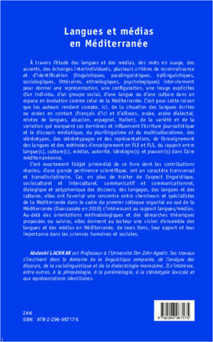 A travers l'étude des langues et des médias, plusieurs critères de reconnaissance interviennent pour donner une représentation d'un individu ou d'une culture dans un espace en évolution comme celui de la Méditerranée. C'est pour cette raison que les auteurs rendent compte, ici, de la situation des langues écrites ou orales en contact. En plus de l'aspect linguistique, socioculturel et communicatif, voici une vision d'ensemble des langues et des médias.
