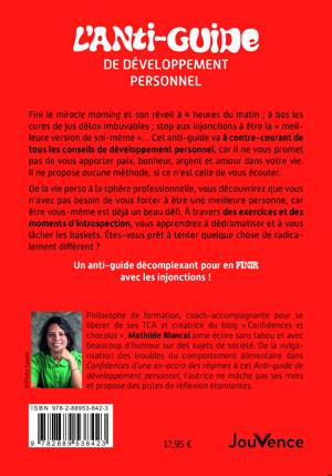 Fini le miracle morning et son réveil à 4 heures du matin ; à bas les cures de jus détox imbuvables ; stop aux injonctions à être la « meilleure version de soi-même »… Cet anti-guide va à contre-courant de tous les conseils de développement personnel, car il ne vous promet pas de vous apporter paix, bonheur, argent et amour dans votre vie.