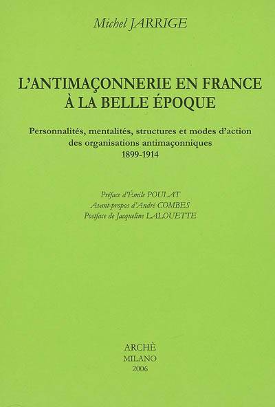 Le dépouillement exhaustif des revues antimaçonniques (notamment La Franc-Maçonnerie démasquée, La France chrétienne, La Bastille, La Revue antimaçonnique, la Revue internationale des sociétés secrètes) et la consultation d'archives à la Bibliothèque nationale de France, au Centre historique des Archives nationales et aux Archives historiques de l'archevêché de Paris ont permis de mettre en lumière la grande vitalité et les rivalités des groupements impliqués. Ce faisant, Michel Jarrige a écrit la première histoire complète de l'antimaçonnerie en France à la Belle Époque. Cette étude constitue donc une contribution très appréciable à l'histoire des idées et des mouvements politiques pour la période concernée.