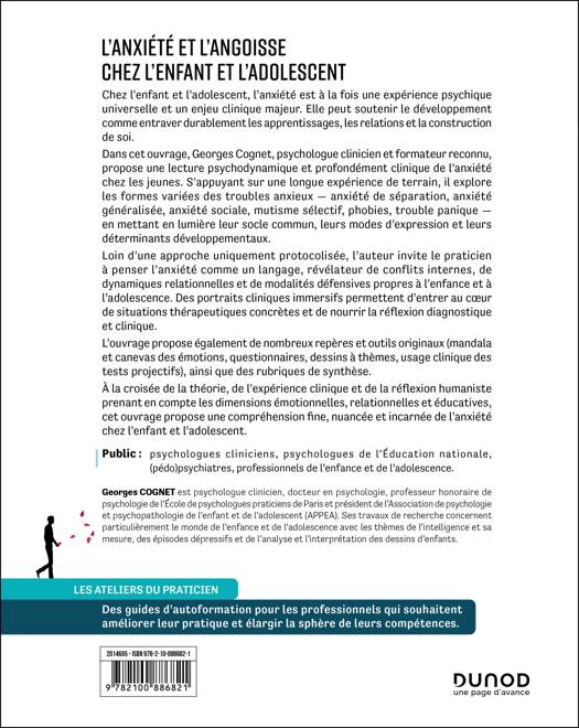 Dans cet ouvrage, Georges Cognet, psychologue clinicien et formateur reconnu, propose une lecture psychodynamique et profondément clinique de l’anxiété chez les jeunes. S’appuyant sur une longue expérience de terrain, il explore les formes variées des troubles anxieux — anxiété de séparation, anxiété généralisée, anxiété sociale, mutisme sélectif, phobies, trouble panique — en mettant en lumière leur socle commun, leurs modes d’expression et leurs déterminants développementaux.